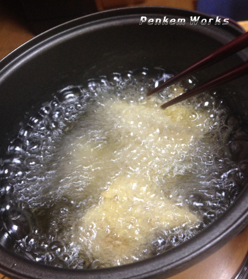 卓上フライヤーで揚げた物をタレの中にぶちこんで。。。うまい!!!